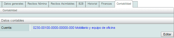 Si requiere modificar la cuenta predeterminada de un empleado, vaya a la pestaña de "Empleado" y seleccione a quien desea modificar, después dé click sobre la pestaña de "Contabilidad" y edite la cuenta del empleado.