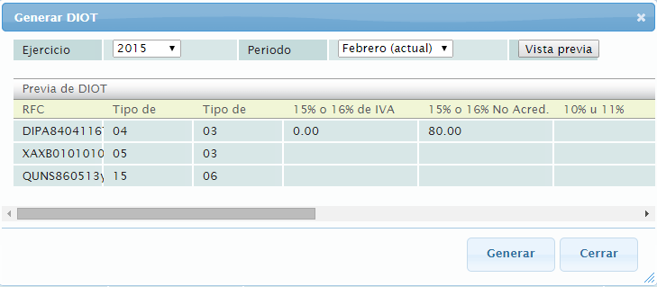 Haga el filtrado por ejercicio y periodo, si no está seguro del ejercicio o periodo, puede dar click en la opción "Vista previa" y ver el reporte antes de ser descargado.