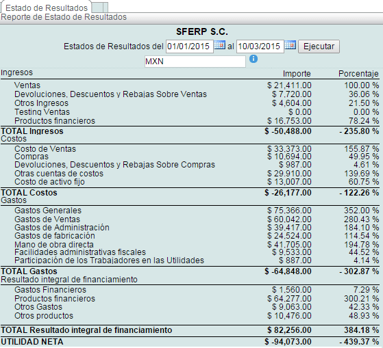 Reporte estado resultado: este reporte muestra la utilidad obtenida por la empresa, en un periodo determinado.