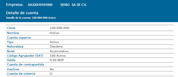 Es un reporte el cual le muestra la información detallada de una determinada cuenta de su catálogo contable.