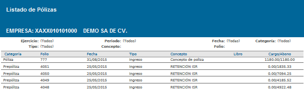 Nota: si requiere que la póliza este detallada seleccione la casilla.