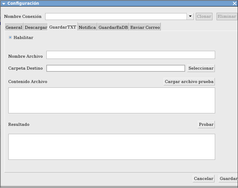 • Nombre Archivo: ingrese el nombre del archivo destino.