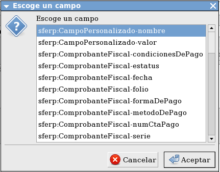 Ejemplo: [sferp:ComprobanteFiscal-folio]|[sferp:ComprobanteFiscal-serie]|[cfdi:Comprobante-fecha]|