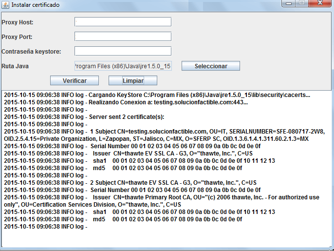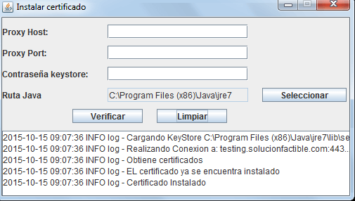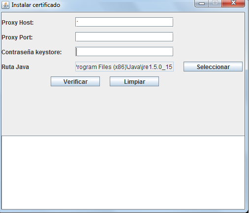 Ruta Java: es muy importante que seleccione la ruta del Java con el que corre su aplicación, de lo contrario la instalación de nuestro certificado de seguridad no tendrá efecto.