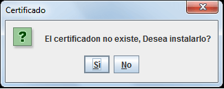 En el caso que el certificado no se encuentre instalado, el sistema le preguntará si desea instalarlo, dé click en el botón "Si".