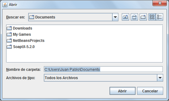 Para agregar la ruta del archivo Java, seleccione la carpeta como se muestra a continuación: