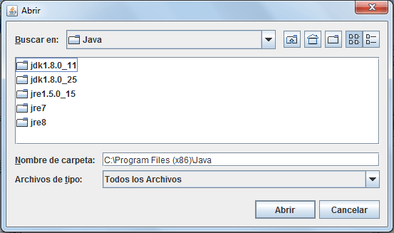 Nota: seleccione la carpeta de Java con la cual corre su aplicación, en caso de no contar con mas de una versión de Java omita este paso.
