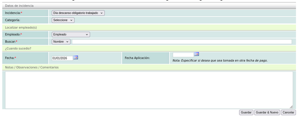 Los usuarios que usan generación automática de Nómina y manejan Incidencias para registrar los días de descanso laborados: