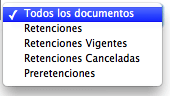 En el primer filtro usted podrá definir el estatus de comprobante que desea visualizar en pantalla. De este modo si selecciona por ejemplo "Pre-retenciones" el sistema tan sólo le mostrará todas aquellas pre-retenciones almacenadas.