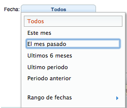 En el segundo filtro usted podrá definir el rango de fechas de los comprobantes que desea visualizar en pantalla. De este modo si selecciona por ejemplo "últimos 30 días" el sistema tan sólo le mostrará los comprobantes generados en los 30 días anteriores al día en transcurso.