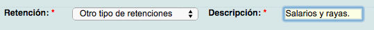 Nota: En caso de elegir el tipo de retención "Otro tipo de retenciones" deberá especificar el nombre de dicha retención.