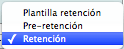 Seleccione el tipo de retención del comprobante, para realizar esta acción dé click sobre el botón y seleccione de la lista la retención deseada.