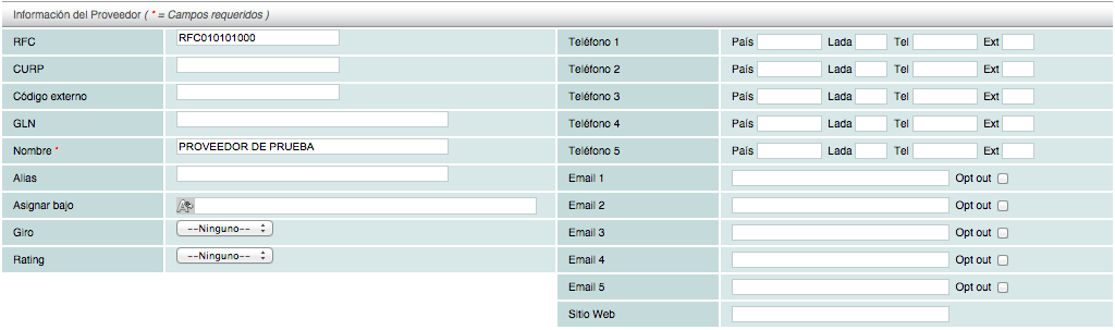 Datos obligatorios: RFC y nombre del proveedor (nombre fiscal o razón social), el resto de los datos solicitados en este bloque son de carácter informativo y sólo le ayudan a mantener una mayor información de su proveedor, sin embargo no van impresos en el comprobante electrónico.