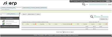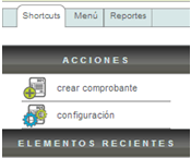 Del lado izquierdo, por debajo del panel principal, encontrará los accesos rápidos de la aplicación (Shortcuts). Este menú tiene por nombre "Acciones" y es un menú contextual, esto significa que dicho menú cambiará en sus opciones dependiendo del módulo en el cual se encuentre.