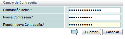 A continuación ingrese su nueva contraseña y dé click sobre el botón "Guardar".