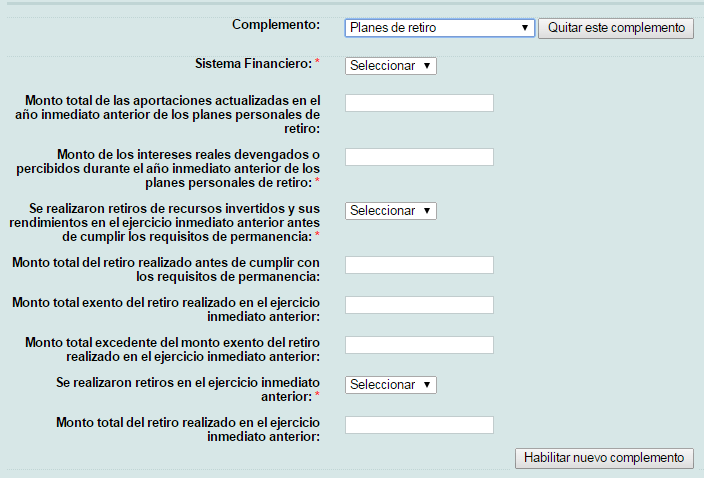 Complemento para expresar la información sobre los planes personales de retiro.
