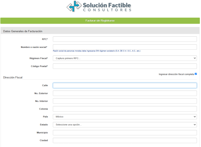 Facturar sin registrarse