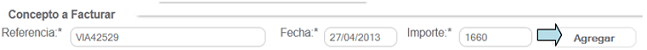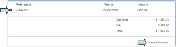Si agregó más de una factura, el total será la suma de los importes, si desea eliminar una factura agregada, sólo de click en el icono ubicado a un costado de la referencia.