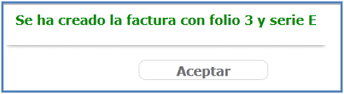 El sistema confirmará la creación de su factura y le indicará el folio y serie de la misma.