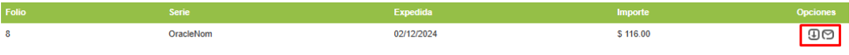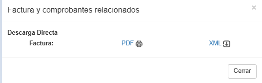 Para descargar el PDF y el XML de la factura, de click sobre el ícono