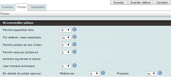 Por defecto, crear prepólizas: Al capturar una póliza, el sistema le permite