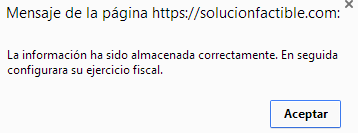 necesario configurar el "ejercicio fiscal" acepte el mensaje para realizar dicha configuración.
