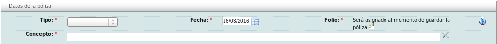 • Concepto: Nombre con el cual se identificará la póliza en el sistema.