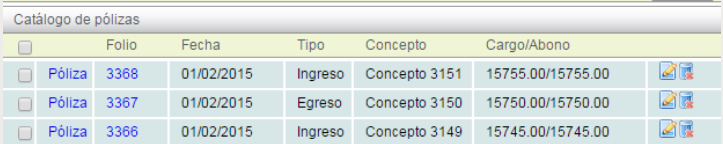 Una vez dentro podrá observar las pólizas previamente registradas, dé click en el documento que desea clonar para acceder a su contenido.