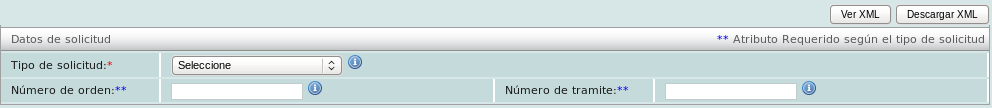 • Tipo de solicitud: Define el tipo de solicitud de la póliza. Valores posibles: “AF - Acto de Fiscalización”, “ FC - Fiscalización Compulsa”, "DE - Devolución" y “CO - Compensación”.