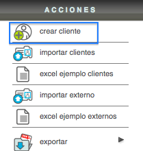 Una vez dentro del módulo, diríjase al menú "Acciones" y dé click en la opción "Crear cliente".