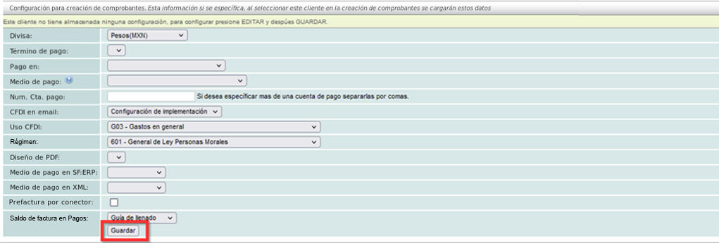 Una vez definidos los campos que vea necesarios de click en el botón "Guardar".