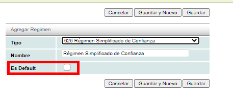 If you want this new setting to be selected by default, check the "Es Default" box. Then click the "Guardar" button.