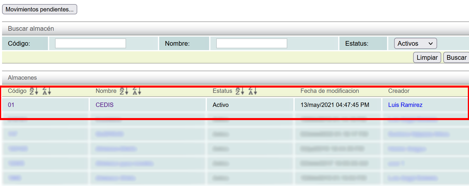 Next, locate the "Almacenes" option and click on it.