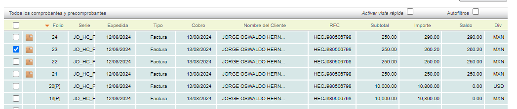 De click en el comprobante que desea cancelar.