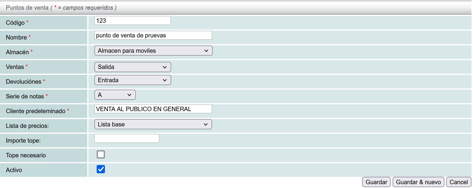 - Tope Necesario (Required Limit): if you enable this option, the system will not allow sales once the limit is exceeded. Otherwise, the system will allow sales even if the limit is exceeded.
