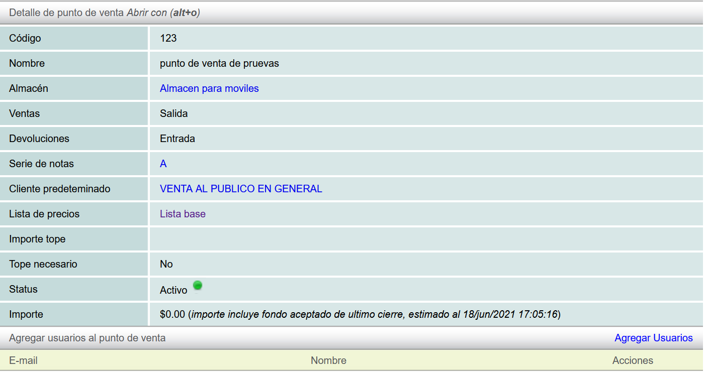- Activo (Active): allows you to define if the Point of Sale is active.