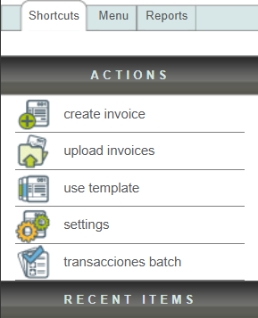 Below the "Actions" menu, you'll find a shortcut to the "RECENT ITEMS" that were viewed.