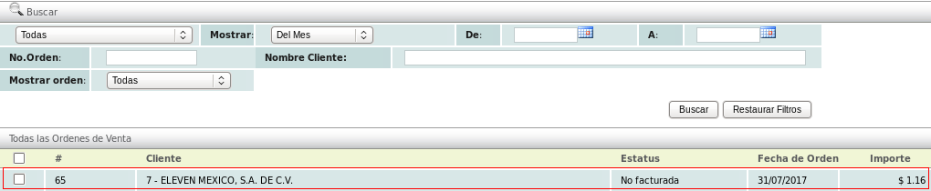 Busque la orden de venta mediante el nombre del cliente o el número de orden, y dé click en ella.
