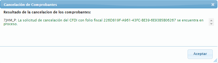 Las notas de cancelación son opcionales y son resguardadas en el portal de Solución Factible.