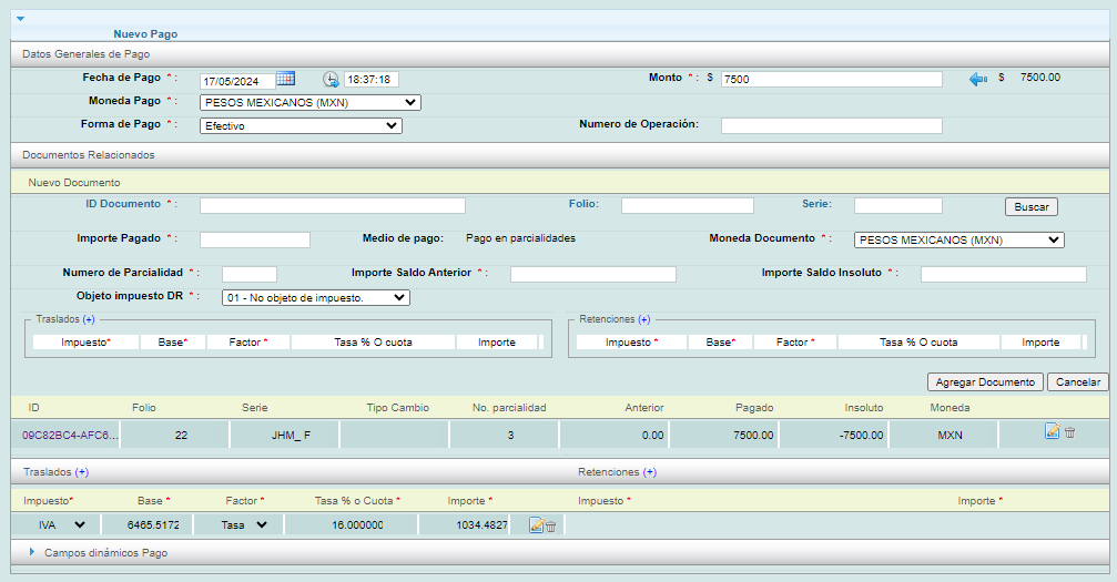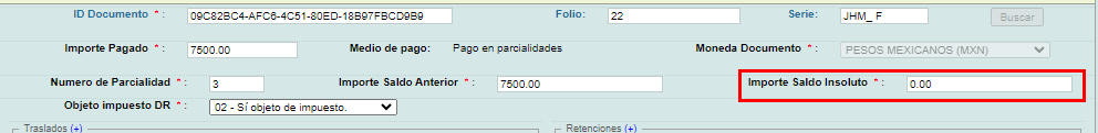 De tal manera que el saldo insoluto muestre el valor deseado (En este ejemplo saldo 0.00).
