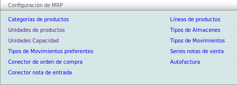 Se mostrará el menú de configuración de MRP, dé click en el botón "Unidades de productos".