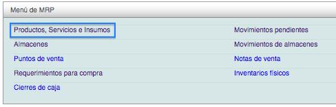 Select the "Productos, Servicios e Insumos" option by clicking on the indicated option.