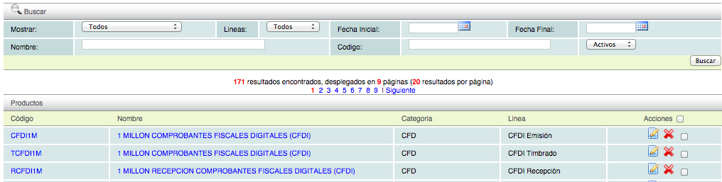 Once inside the module, you will be able to view the product catalog, that is, the list of products you have registered in the system. Select the product you want to edit by clicking on its name.