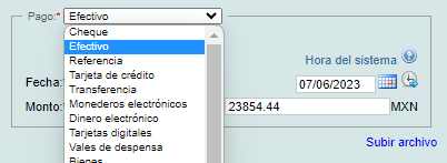 A continuación, deberá indicar la forma de pago "Efectivo", "Transferencia", "Cheque", entre otras.