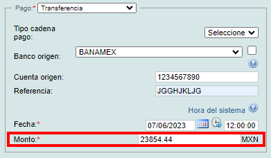 En el caso de Transferencia o Cheque, es opcional registrar los datos del banco emisor y referencia de la operación, proporcionados por su cliente.