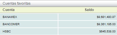 A continuación el sistema le mostrará por defecto las cuentas que se hayan registrado y marcado como favoritas, si aún no ha registrado las cuentas bancarias, vea la lección ID-503.1