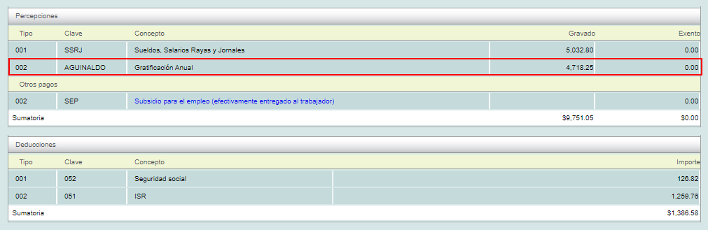 Crear recibo de nómina ordinaria con Gratificación Anual (Aguinaldo)