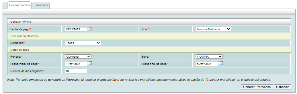 • Periodo. Determine la periodicidad de pago en su nómina (semanal, quincenal, etc.).