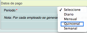 Deberá especificar el periodo de pago, "Mensual", "Quincenal", "Semanal" o "Diario".