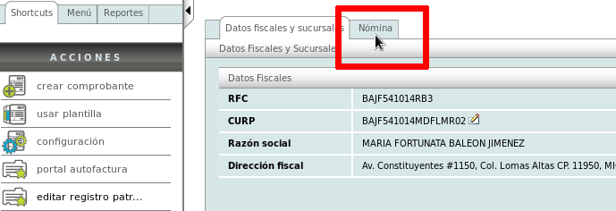 click en la pestaña de "Nómina".